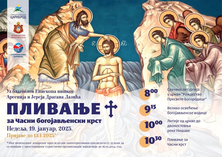 На велики хришћански празник, Богојављење, 19. јануара, уз благослов Епископа нишког Арсенија и Јереја Драгана Лазића у Димитровграду ће бити организовано пливање за Часни Богојављенски Крст код двомостовља на реци…